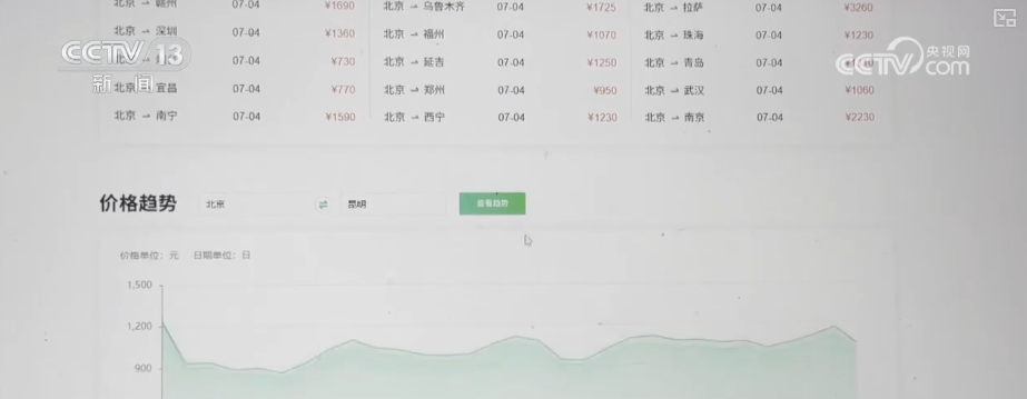 目前,昆明、烏魯木齊、西安等長線目的地的暑期機票價格已開始小幅上漲。記者查詢發(fā)現(xiàn),以北京—昆明機票為例,7月上旬價格在千元左右,7月中旬開始至8月中旬,價格小幅上漲,均價在1200元到1500元之間。