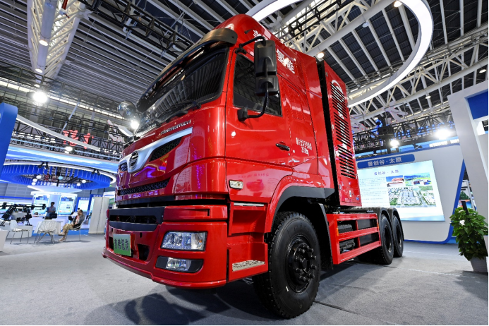 在2024中國(guó)(太原)國(guó)際能源產(chǎn)業(yè)博覽會(huì)上拍攝的氫能重卡。新華社記者 楊晨光 攝