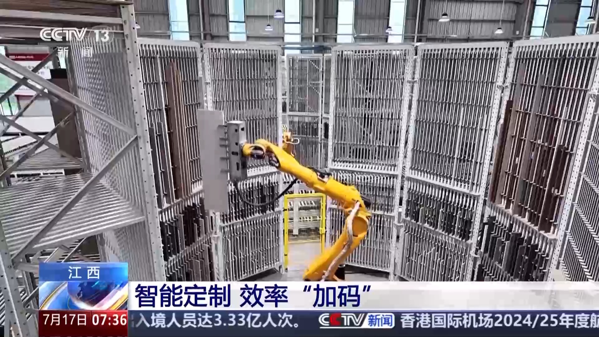 總臺央視記者 張琪:分揀機(jī)械臂正將加工好的木板快速存放在書本架上,這一個單元的書架可以存放480片部件板,打造10個柜子,夠一個家庭使用。