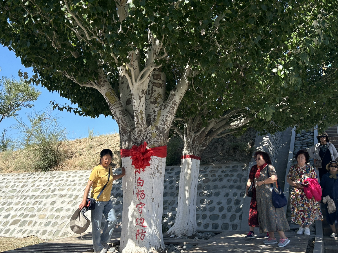 “當(dāng)年這里除了鐵絲網(wǎng)就是石頭山?!币娮C哨所變遷的兵團職工蔣晶華回憶,官兵們住地窩子、啃干馕,卻始終像那棵白楊一樣“向下扎根”。如今,第二代哨樓旁的白楊樹已成參天大樹,樹干上“守衛(wèi)祖國”的刻字仍清晰可辨。
