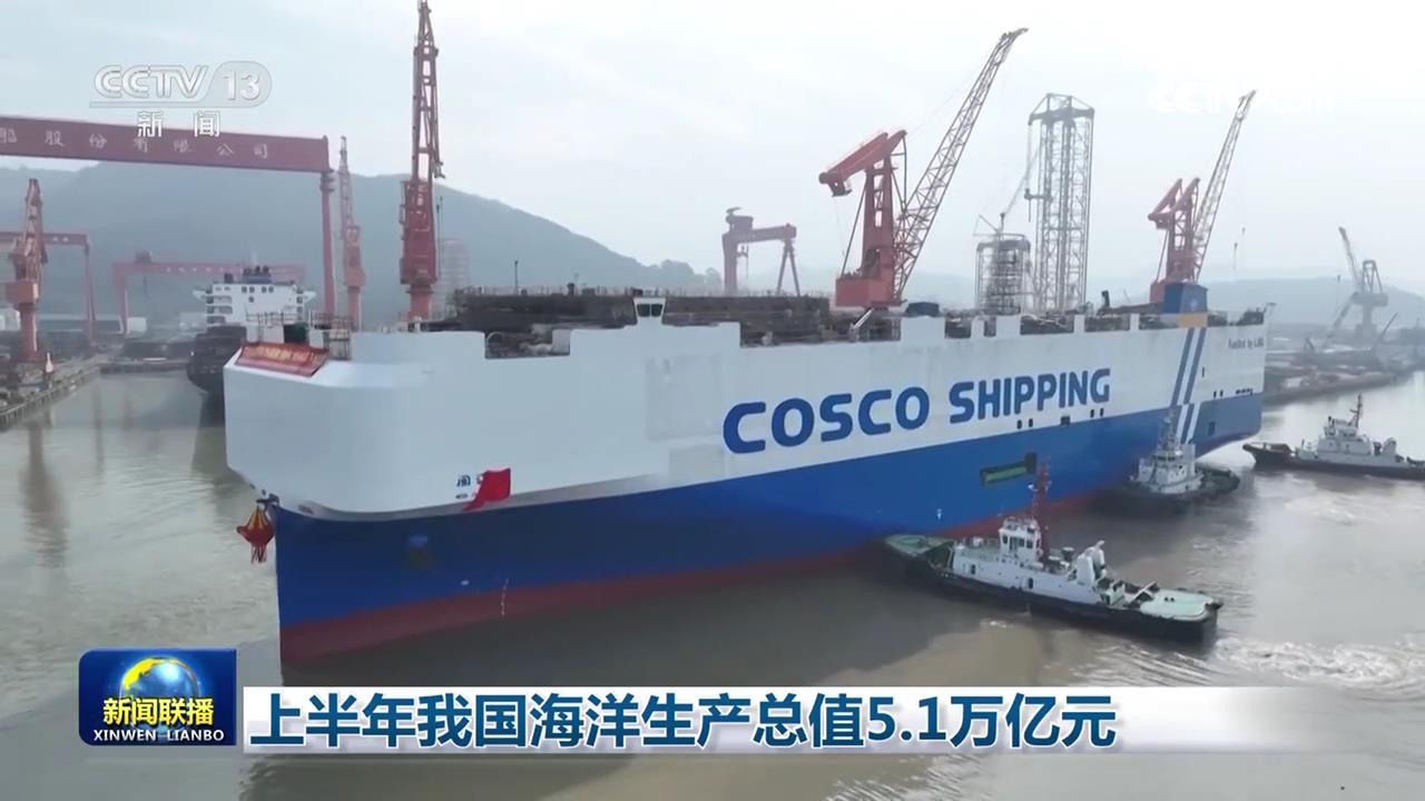 央視網(wǎng)消息(新聞聯(lián)播):記者從自然資源部了解到,上半年,我國(guó)海洋經(jīng)濟(jì)穩(wěn)中向好,初步核算,海洋生產(chǎn)總值5.1萬(wàn)億元,同比增長(zhǎng)5.8%。