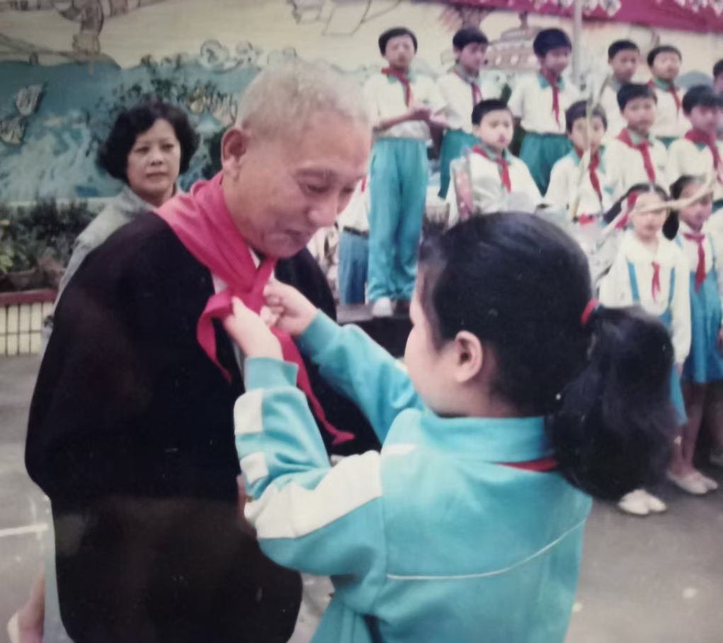 ↑在鄱陽街小學(xué)演講活動(dòng)期間,學(xué)生為李德富系紅領(lǐng)巾