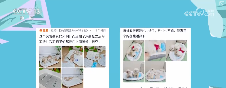 高溫還催熱了“它經(jīng)濟(jì)”。在網(wǎng)購(gòu)平臺(tái)上搜索關(guān)鍵詞“寵物降溫”,寵物空調(diào)房、冰墊、冰絲圍巾、寵物專用空調(diào)等商品琳瑯滿目。一件30塊錢左右的基礎(chǔ)款寵物冰墊,月銷量輕松破萬(wàn)??烧{(diào)節(jié)風(fēng)速的寵物風(fēng)扇、能自動(dòng)制冷的寵物窩等,同樣備受追捧。評(píng)論區(qū)的畫風(fēng)是這樣的“狗狗非常喜歡,玩得不亦樂乎”“貓咪睡覺終于踏實(shí)了”“家里的娃和毛孩子都很喜歡”。