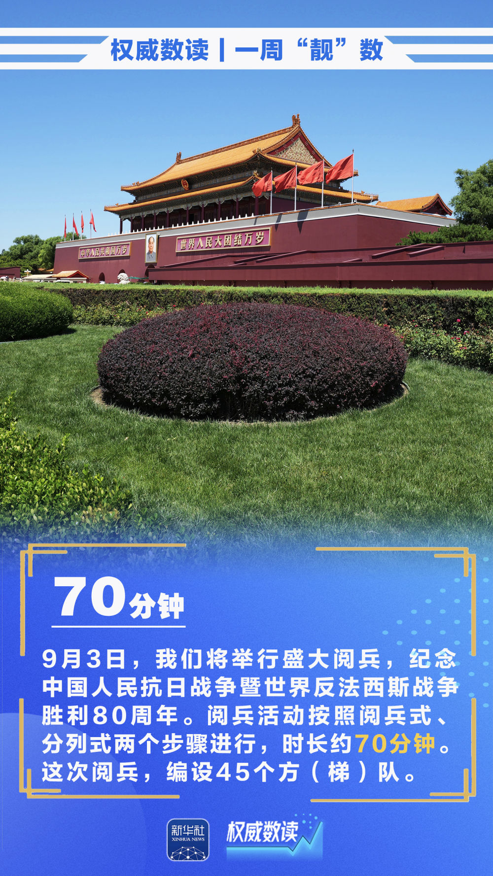 即將到來的九三閱兵活動(dòng)按照閱兵式、分列式兩個(gè)步驟進(jìn)行,時(shí)長(zhǎng)約70分鐘;我國外貿(mào)保持穩(wěn)中有進(jìn)態(tài)勢(shì),累計(jì)進(jìn)出口增速逐月回升,前7個(gè)月實(shí)現(xiàn)3.5%的增長(zhǎng);今年前7個(gè)月,我國對(duì)上海合作組織其他成員國進(jìn)出口2.11萬億元,規(guī)模創(chuàng)歷史同期新高……本周這些數(shù)據(jù),最值得關(guān)注!