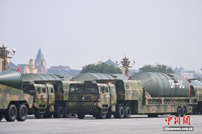 9月3日,紀念中國人民抗日戰(zhàn)爭暨世界反法西斯戰(zhàn)爭勝利80周年大會在北京隆重舉行。圖為核導彈第二方隊“東風-5C”液體洲際戰(zhàn)略核導彈駛過天安門廣場。 中新網記者 趙文宇 攝
