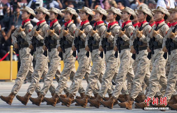 9月3日,紀念中國人民抗日戰(zhàn)爭暨世界反法西斯戰(zhàn)爭勝利80周年大會在北京隆重舉行。圖為民兵方隊接受檢閱。該方隊全部由女民兵組成,這是民兵首次亮相以紀念抗戰(zhàn)勝利為主題的閱兵活動?!≈行戮W記者 趙文宇 攝