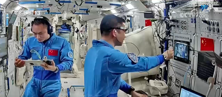 在健康維護(hù)與保障方面,乘組完成了質(zhì)量測量、聽力測試等多項(xiàng)醫(yī)學(xué)檢查,積極進(jìn)行身體鍛煉,并利用神經(jīng)肌肉刺激儀進(jìn)行肌肉放松與萎縮防護(hù),對抗失重生理效應(yīng)。