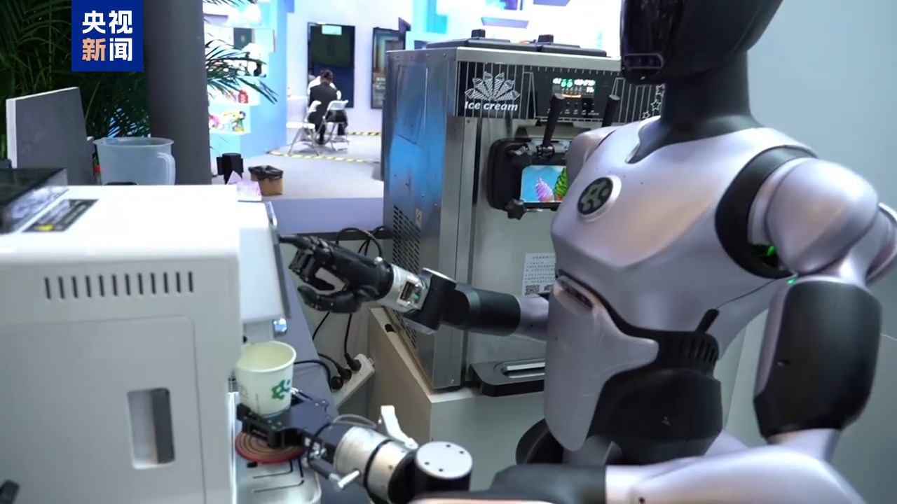 逛累了,還可以來一杯由機(jī)器人制作的咖啡,聽一首由機(jī)器人賽博鼓手奏樂的廣西民歌《大地飛歌》。