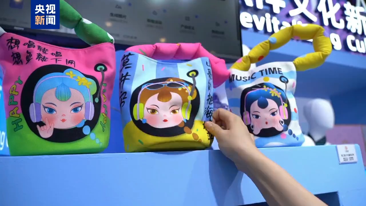 總臺(tái)央視記者 張歆:在人工智能專館,除了有炫酷的機(jī)器人,我們可以看到,這個(gè)水桶包就是由人工智能提供靈感的,以劉三姐為IP形象的文創(chuàng)產(chǎn)品。那么這個(gè)水桶包還引用了劉三姐山歌的內(nèi)容,“山歌能把海填平”。