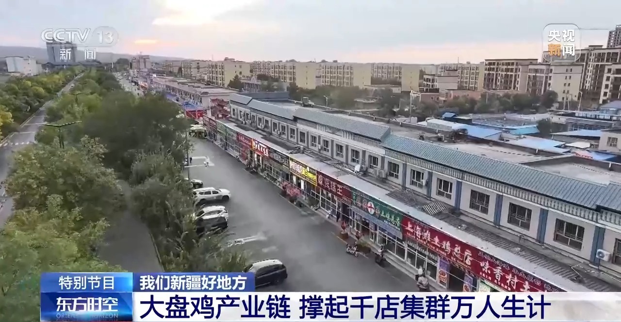 總臺央視記者 張叢婧:在新疆沙灣市的“大盤雞一條街”,這里幾乎家家戶戶都在做大盤雞,此時(shí)整條街都彌漫著香味。很多人知道新疆大盤雞,但可能并不知道,它的發(fā)源地就在這里。