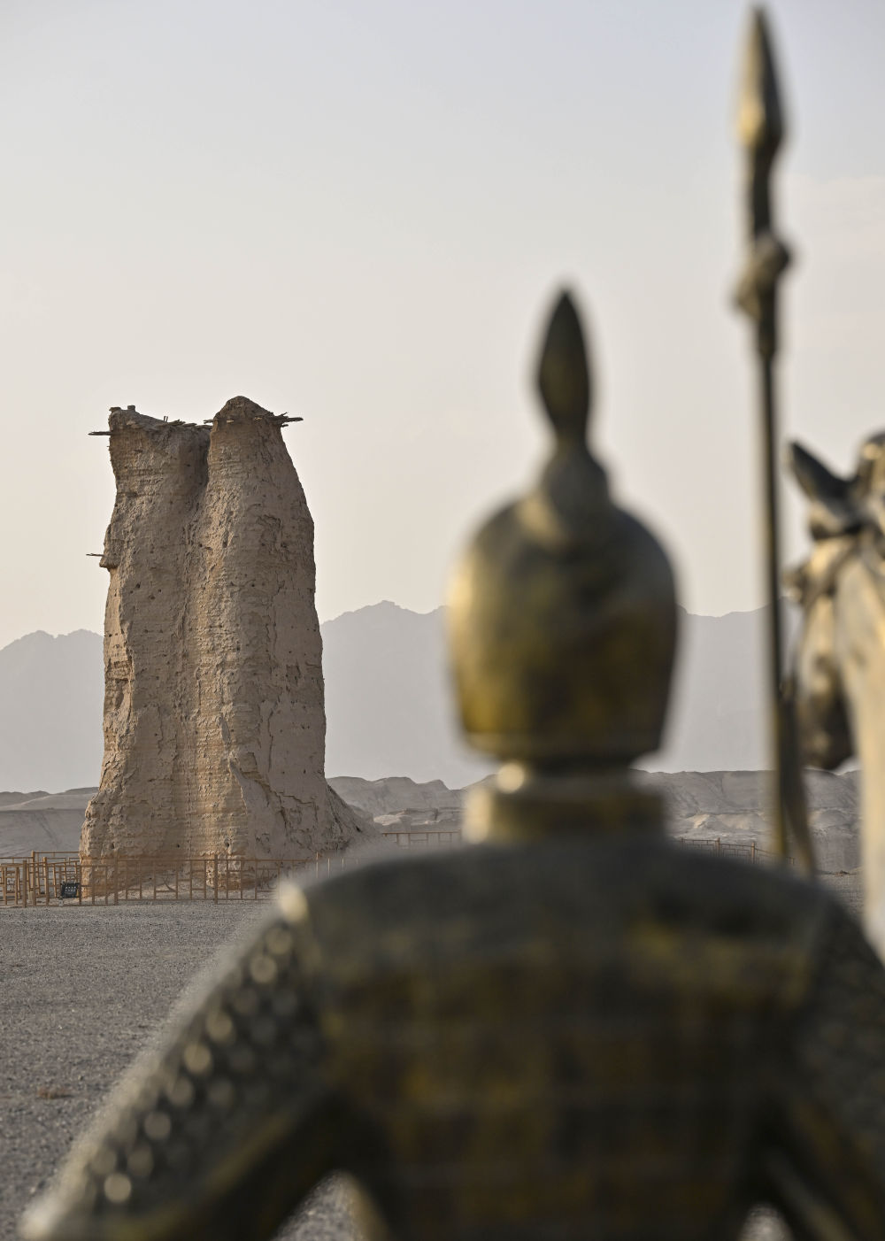 “克孜爾尕哈”意為“紅色哨卡”。夕陽下,這座漢代軍事設施的夯土墻體被映照得棱角分明,泛著淡淡的金紅色?!罢驹谶@里,仿佛看到了當年的烽火傳訊?!币幻慰透锌卣f。