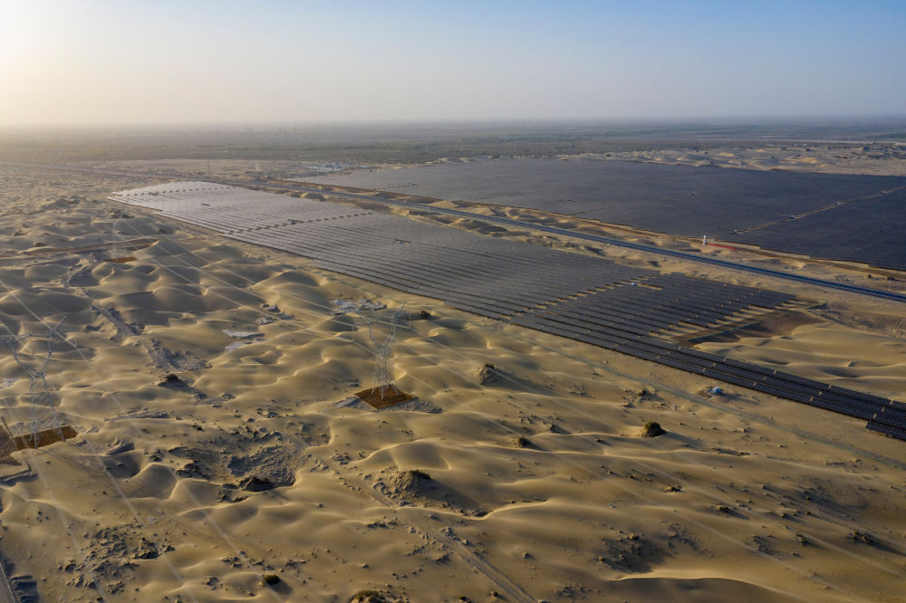 9月22日在新疆巴音郭楞蒙古自治州若羌縣拍攝的中國綠發(fā)新疆中綠電若羌400萬千瓦光伏項(xiàng)目(無人機(jī)照片)。該項(xiàng)目每年可發(fā)電69.08億千瓦時(shí),滿足南疆200萬戶家庭用電需求,減排208.24萬噸煤耗。