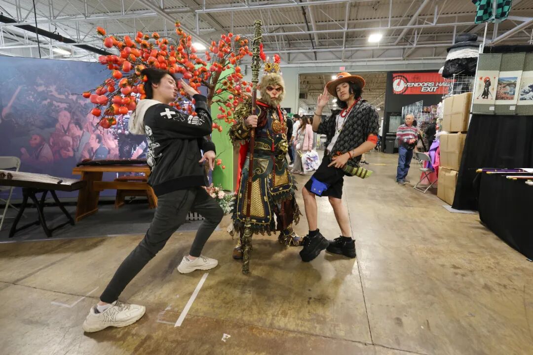 當(dāng)?shù)貢r(shí)間2025年5月25日,加拿大多倫多,在北美動(dòng)漫節(jié)上,一位動(dòng)漫coser(角色扮演者)以中國國產(chǎn)游戲《黑神話:悟空》的悟空形象現(xiàn)身,吸引動(dòng)漫迷合影。中新社記者 余瑞冬 攝