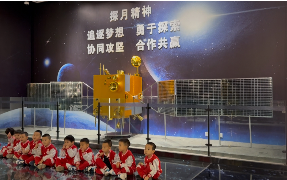 小朋友參觀航天館并合影留念(央廣網(wǎng)發(fā) 王語詩(shī) 攝)