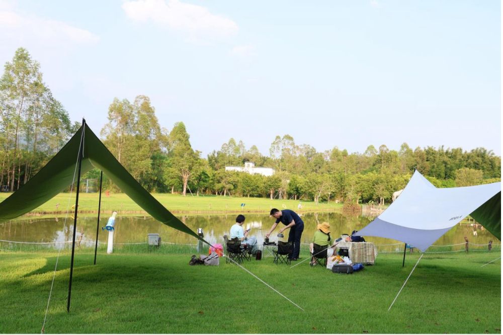 國慶中秋假期,廣州的游客在天幕旁享受露營時光。新華社記者鐘焯 攝
