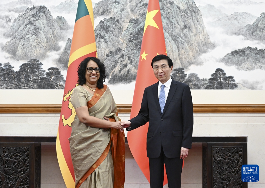 全國政協(xié)主席王滬寧13日在京會見來華出席全球婦女峰會的斯里蘭卡總理阿馬拉蘇里亞。