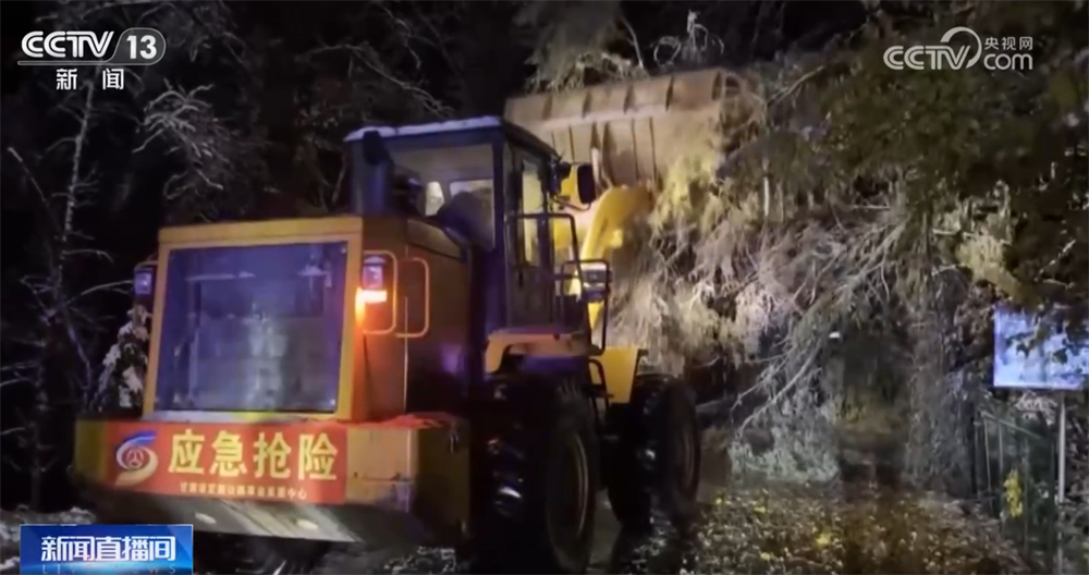 甘肅定西出現(xiàn)降雪 公路部門連夜除雪保暢