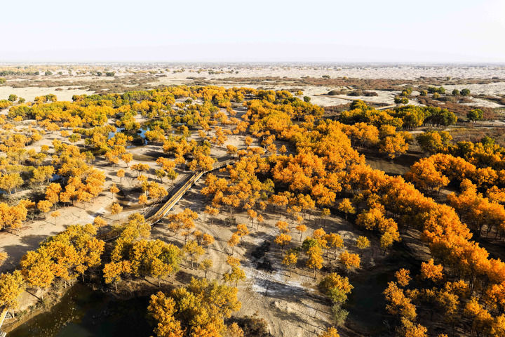 金秋十月,新疆生產(chǎn)建設(shè)兵團(tuán)白沙湖景區(qū)層林盡染,吸引了不少游客?!拔覀円褜W(xué)習(xí)好貫徹好全會(huì)精神作為重大政治任務(wù),落實(shí)好習(xí)近平總書(shū)記關(guān)于‘全體人民共同富裕邁出堅(jiān)實(shí)步伐’的部署和要求,深挖‘種地就是站崗,放牧就是巡邏’的兵團(tuán)紅色文化,帶領(lǐng)大家奔向共同富裕?!毙陆a(chǎn)建設(shè)兵團(tuán)第十師一八五團(tuán)黨委副書(shū)記周小斌說(shuō)。