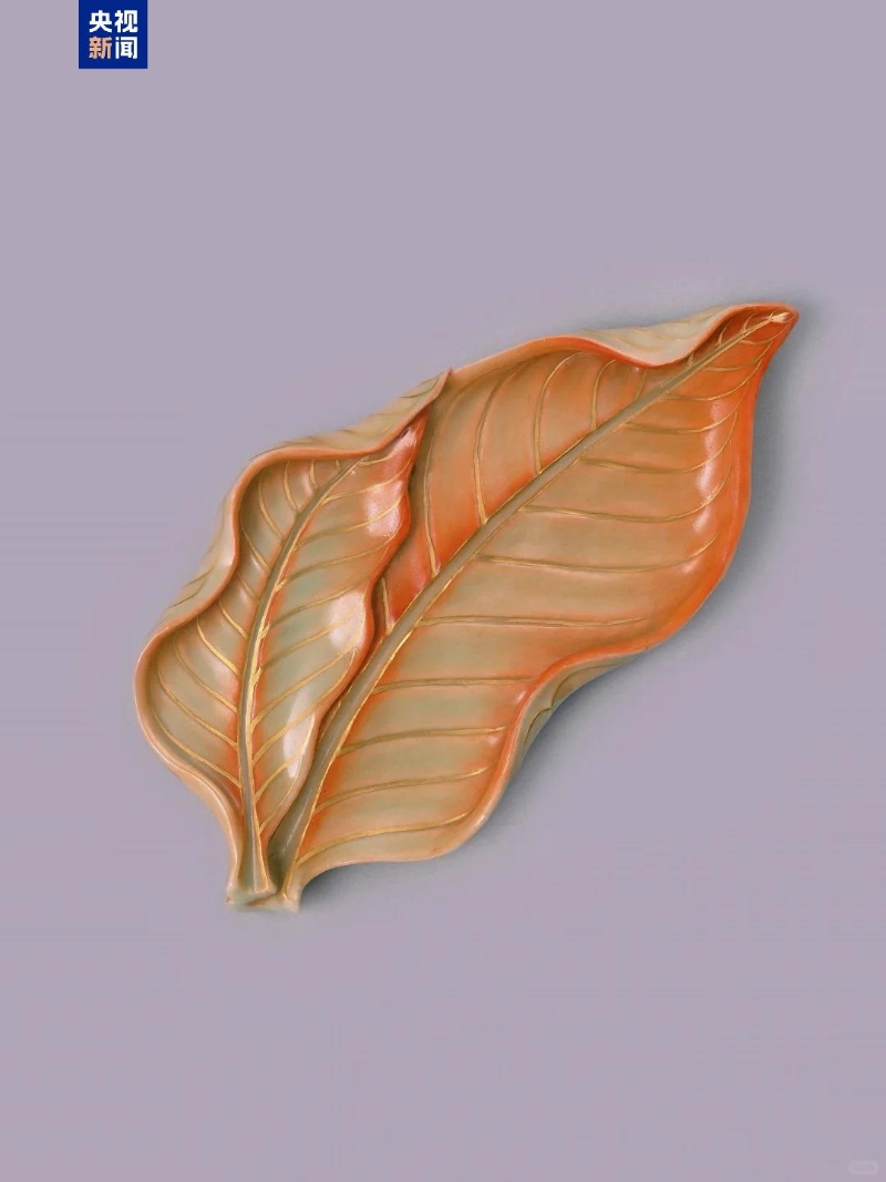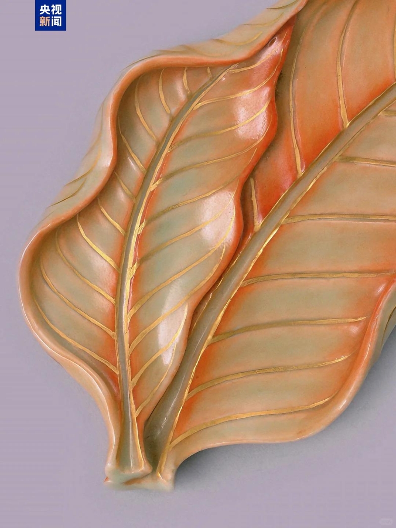 器面的葉脈描畫(huà)清晰并以描金裝飾