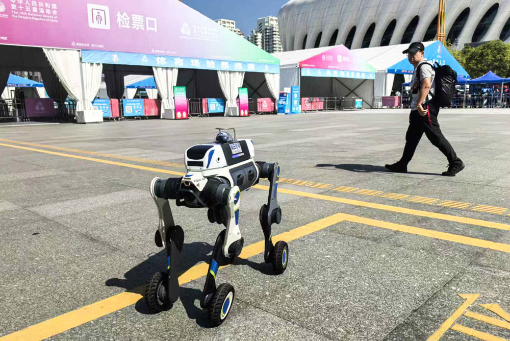 11月9日,機(jī)器人在第十五屆全國運(yùn)動(dòng)會(huì)開幕式現(xiàn)場表演。