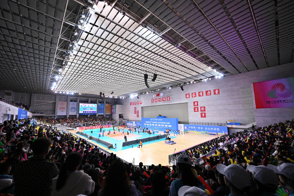 這是2025年11月20日拍攝的在廣東江門(mén)舉行的第十五屆全國(guó)運(yùn)動(dòng)會(huì)排球男子成年組冠亞軍決比賽現(xiàn)場(chǎng)。新華社記者 李鑫 攝