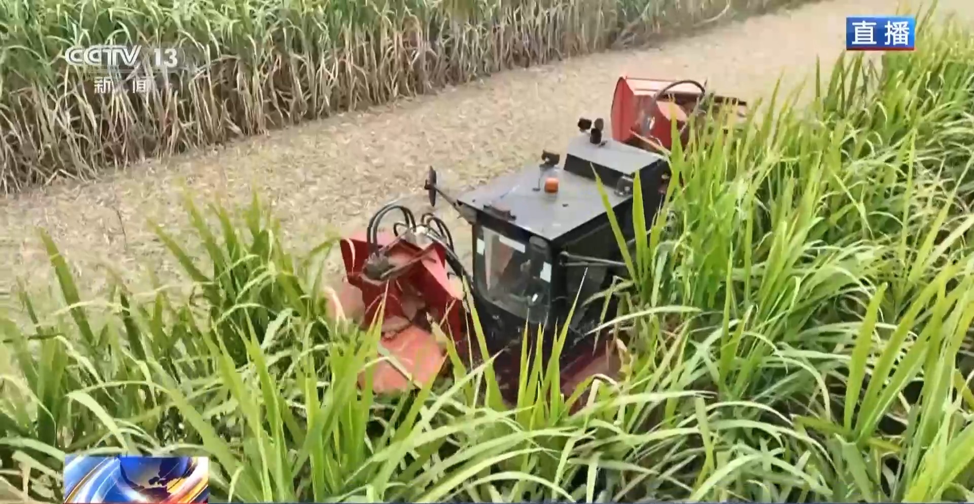 總臺記者 鄧君洋:我現(xiàn)在位于廣西來賓國家現(xiàn)代農業(yè)產(chǎn)業(yè)園的一處糖料蔗基地。在來賓,聯(lián)合收割機從2014年開始就使用,比較適用于地形平坦、種植面積大的甘蔗基地。