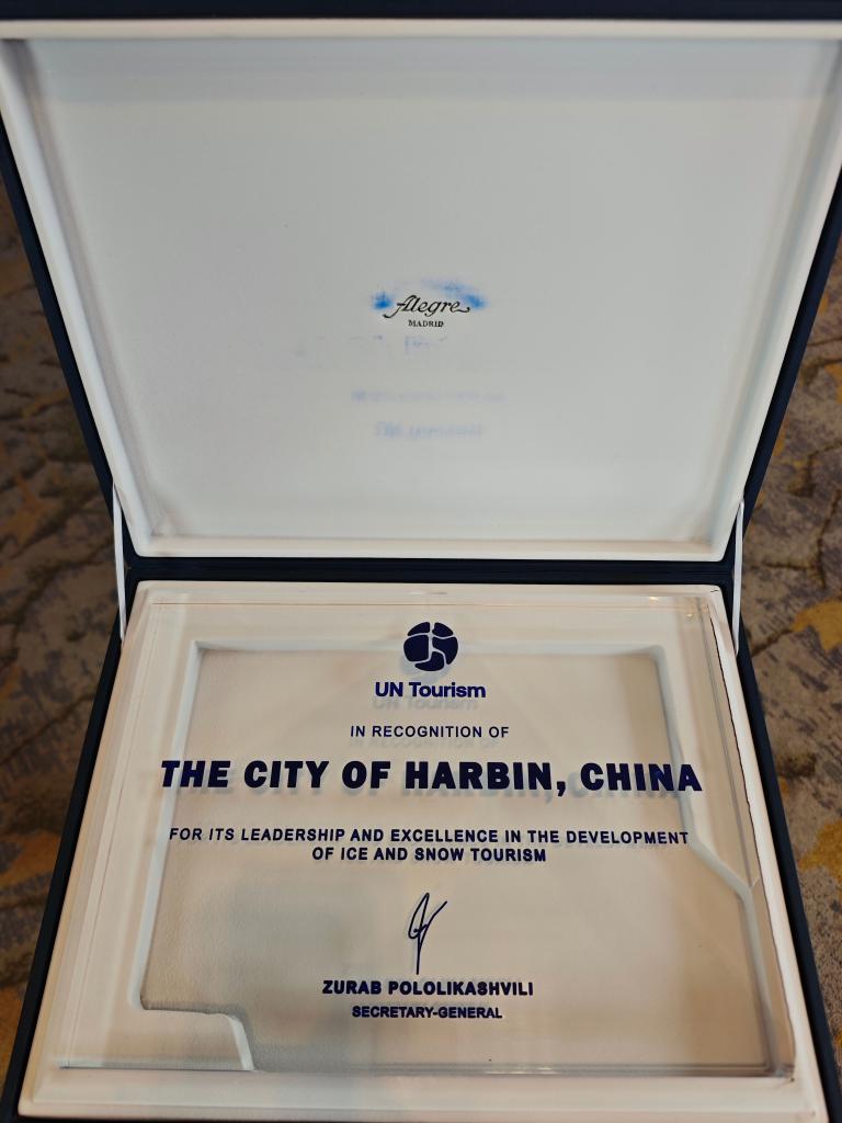 聯(lián)合國(guó)旅游組織授予哈爾濱“世界冰雪旅游卓越城市”稱(chēng)號(hào)。(哈爾濱市委宣傳部供圖)