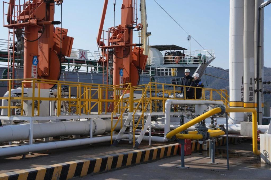 圖為長(zhǎng)三角海關(guān)開(kāi)展保稅燃油跨關(guān)區(qū)直供業(yè)務(wù)。(上海海關(guān)供圖)