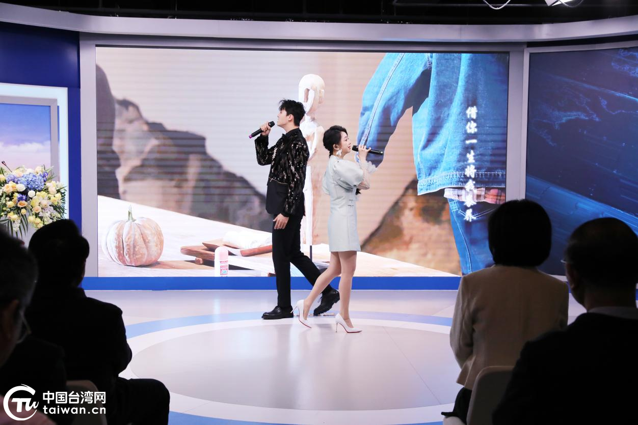 發(fā)布會(huì)現(xiàn)場,來自中國臺灣地區(qū)的青年歌手魏暉倪與中國鐵路文工團(tuán)青年歌唱演員趙學(xué)飛對唱《青山青》主題曲。(中國臺灣網(wǎng)記者 陳佳慧 攝)