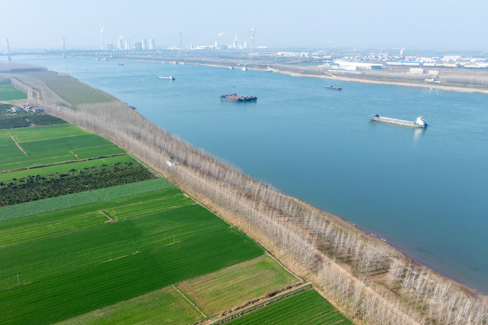 2026年1月6日在湖北省荊州市公安縣楊家廠鎮(zhèn)長(zhǎng)江村拍攝的長(zhǎng)江荊州段(無(wú)人機(jī)照片)。新華社記者 杜子璇 攝