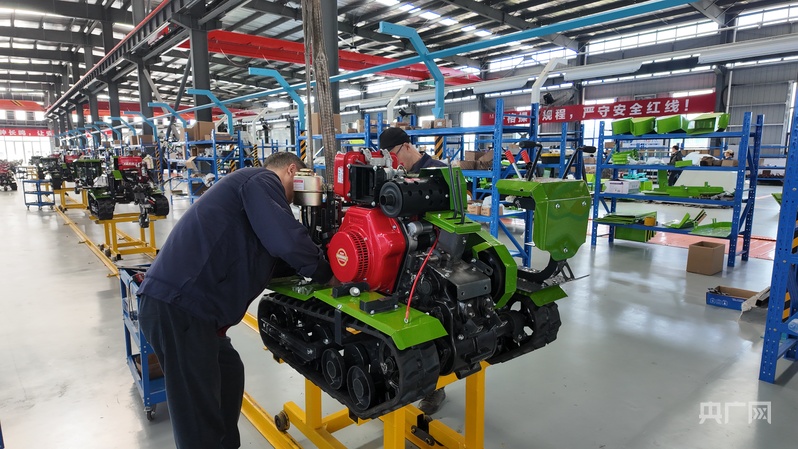 達(dá)州丘陵山區(qū)現(xiàn)代農(nóng)林裝備專業(yè)園區(qū)的生產(chǎn)線上,工人們正在組裝農(nóng)機裝備(央廣網(wǎng)記者 昌思榮 攝)