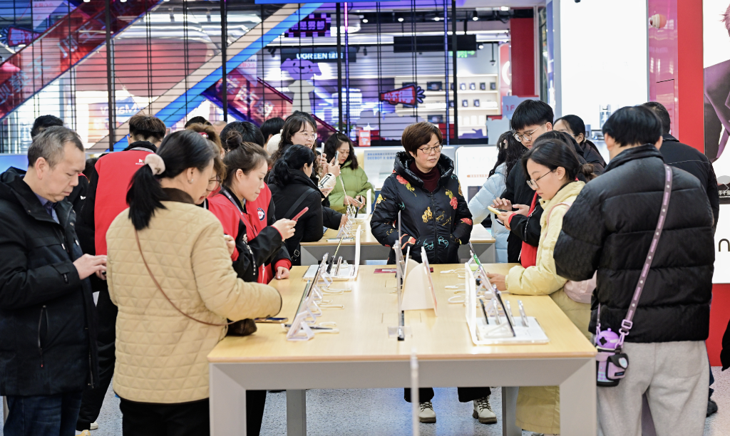 2026年“新國補(bǔ)”落地,消費(fèi)者在重慶京東MALL選購手機(jī)。(受訪者供圖)