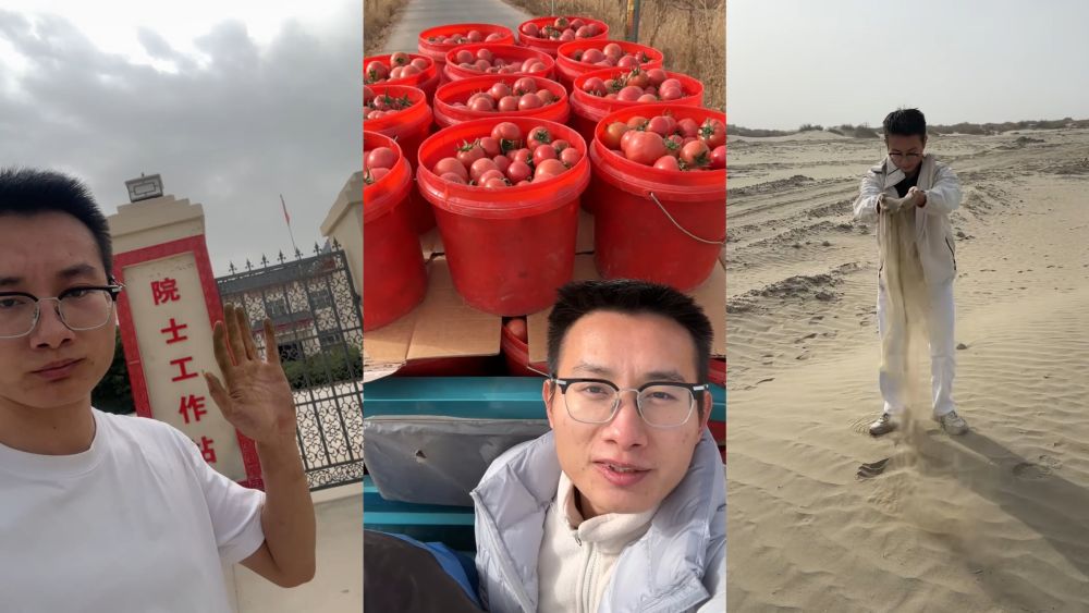 “喀柿紅”產(chǎn)地在新疆塔克拉瑪干沙漠邊緣的伽師縣。這是一種番茄新品種,是在沙漠大棚里培育,用當(dāng)?shù)氐蟮柠}堿水澆灌。用陳鎮(zhèn)的話說,這小小的番茄里面都是科技,但沒有“狠活兒”,是完全綠色放心的好產(chǎn)品。