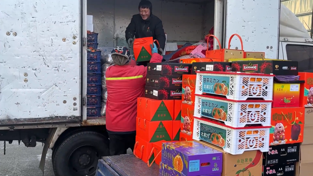 春節(jié)將至,年節(jié)消費市場一片火熱。位于遼寧省盤錦市的東北新發(fā)地農(nóng)產(chǎn)品供應鏈中心,有從南方發(fā)運過來的新鮮果蔬,還有即將發(fā)往全國各地的東北特產(chǎn),進進出出的年貨,讓南北的年味在這里相遇、交融。
