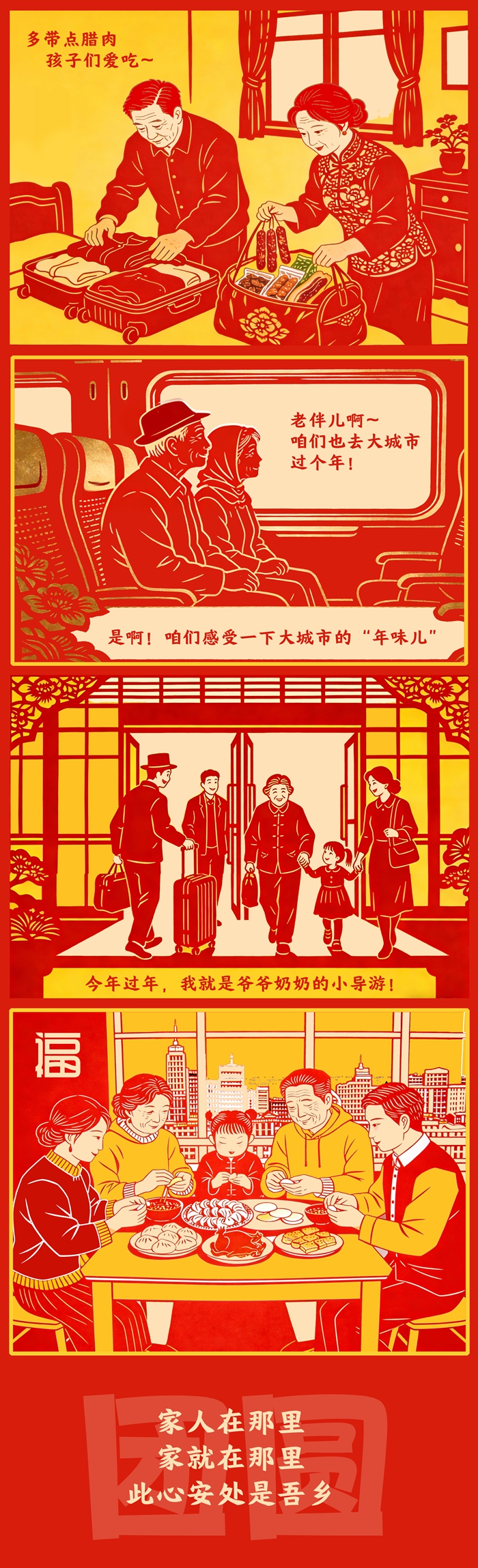 反向春運(yùn),遠(yuǎn)不止出行方式之變,它見證著中國(guó)人對(duì)“家”的理解,從故土坐標(biāo)轉(zhuǎn)向親情紐帶。變的,是團(tuán)圓路徑的智慧選擇;不變的,是對(duì)親情的永恒珍視。一個(gè)充滿活力的現(xiàn)代社會(huì),正以其包容與溫度,為每一種真摯奔赴鋪就道路。流動(dòng)中國(guó)的底色是團(tuán)圓,動(dòng)力是親情,終點(diǎn)永遠(yuǎn)是家之所在。(文字/泰軒萍 漫畫/泰軒萍 編輯/喬佳新)