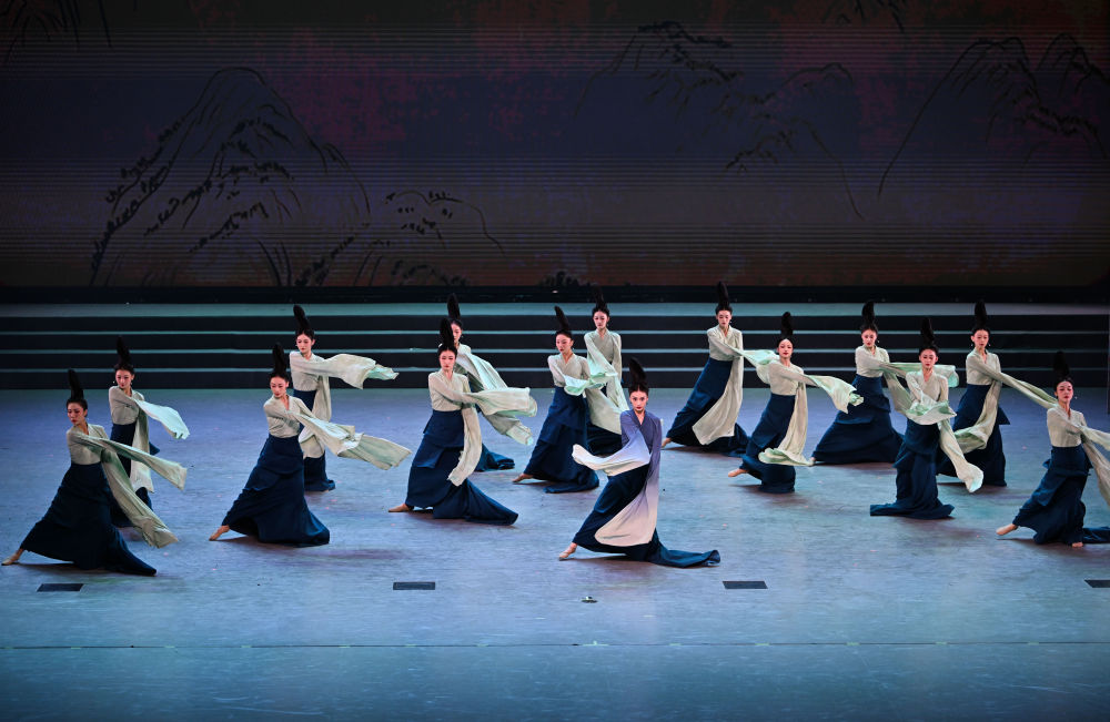 2023年7月29日,演員在聯(lián)歡會(huì)現(xiàn)場表演《只此青綠》。當(dāng)晚,“青春 In Time”第31屆世界大學(xué)生夏季運(yùn)動(dòng)會(huì)運(yùn)動(dòng)員聯(lián)歡會(huì)在成都大運(yùn)村藝術(shù)中心大劇場舉辦。聯(lián)歡會(huì)以魔術(shù)、舞蹈、演唱等藝術(shù)形式為橋梁,推動(dòng)中外青年藝術(shù)家、運(yùn)動(dòng)員、大學(xué)生及志愿者代表互動(dòng)交流,營造歡樂、友愛的大運(yùn)氛圍。