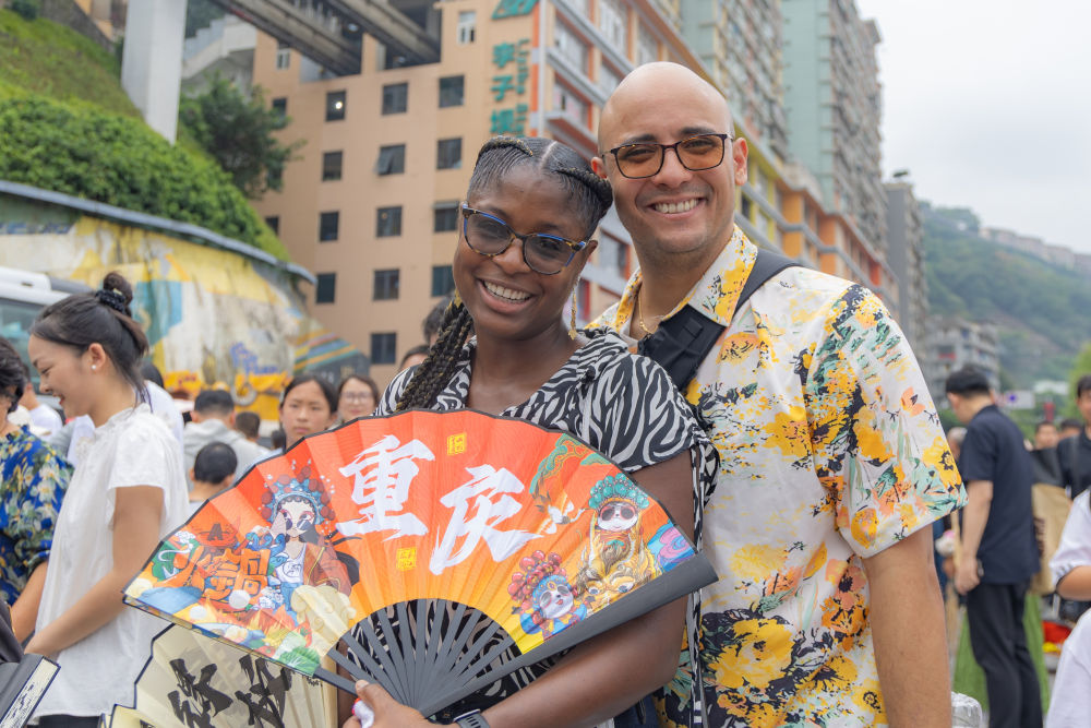 2025年10月3日,加拿大游客克里斯提安(左)和家人在重慶市渝中區(qū)李子壩游玩。近年來,不斷優(yōu)化的入境政策為境外游客赴華提供了更多便利,“來華旅游攻略”“赴華購物清單”等成為國外社交媒體熱門搜索關(guān)鍵詞,“China Travel”的熱度延續(xù)至今。山城重慶憑借其獨(dú)特的城市景觀和風(fēng)土人情,吸引不少外國游客前來品嘗美食、打卡景點(diǎn)、體驗(yàn)文化。