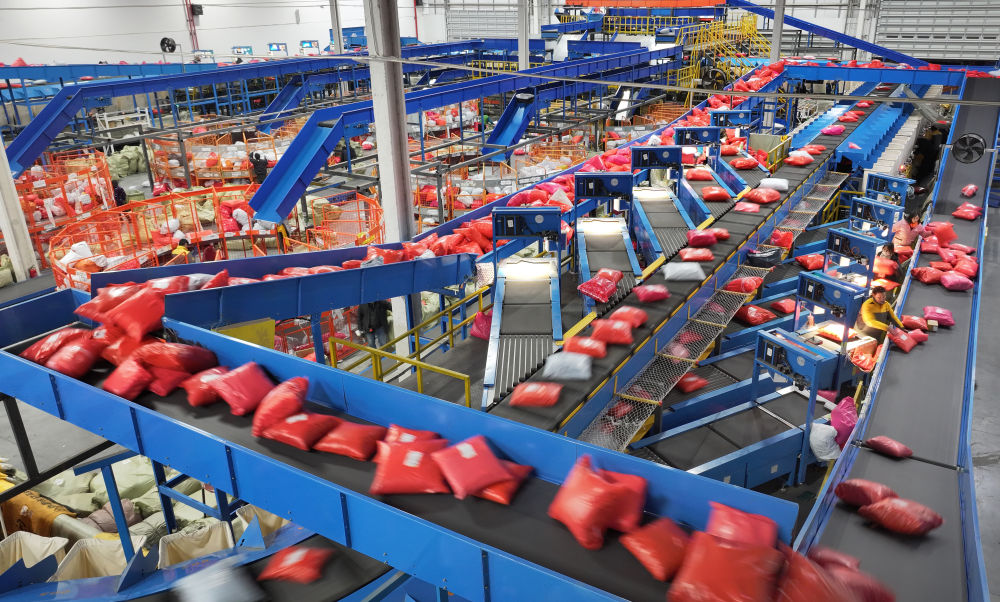 在江蘇南通一家國際物流園分揀中心,工作人員在分揀貨物(2023年12月20日攝,無人機(jī)照片)?!笆奈濉逼陂g,面對地緣政治風(fēng)險和貿(mào)易壁壘,我國以跨境電商、保稅維修、市場采購等為代表的新業(yè)態(tài)新模式助力各國消費者、生產(chǎn)者“買全球、賣全球”,成為穩(wěn)外貿(mào)的重要引擎。