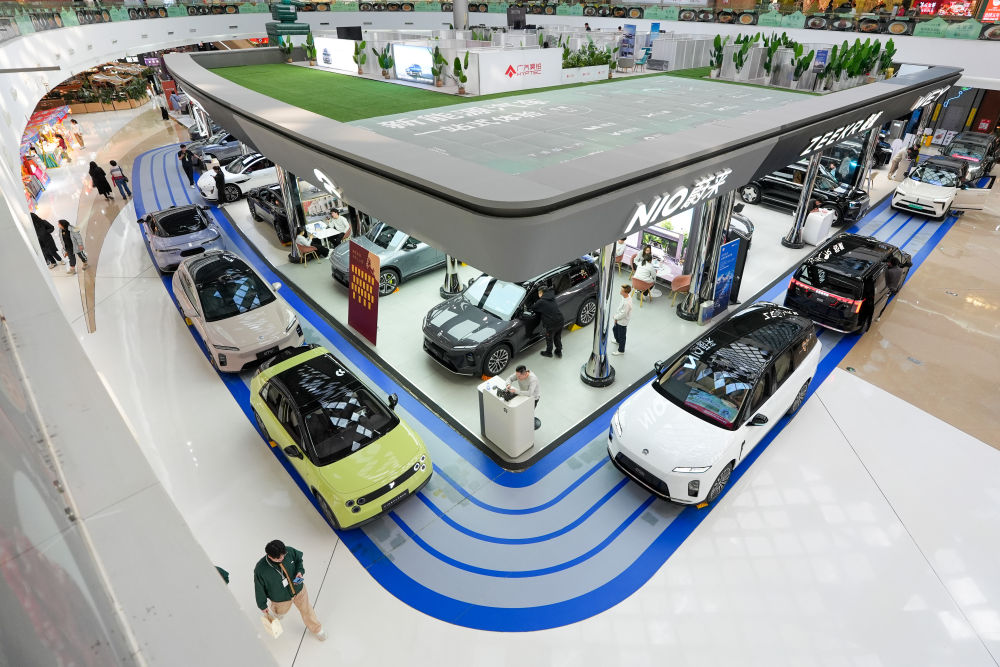 在北京市朝陽區(qū)一個商場內(nèi),市民在了解新能源汽車(2026年2月11日攝)。新華社記者鞠煥宗攝
