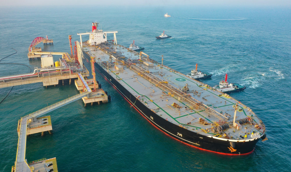 2025年12月18日,一艘裝載著石化原輔料的外籍船舶泊入位于海南省儋州市的國投洋浦油儲碼頭30萬噸級原油泊位(無人機(jī)照片)。當(dāng)日,海南自由貿(mào)易港正式啟動全島封關(guān)。新華社記者 郭程 攝
