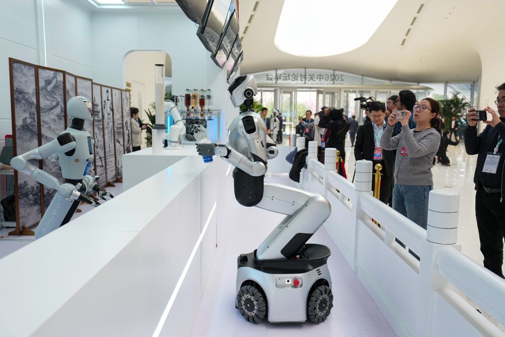 3月25日,在中關(guān)村國際創(chuàng)新中心,嘉賓在參觀機(jī)器人餐吧。 新華社記者 鞠煥宗 攝