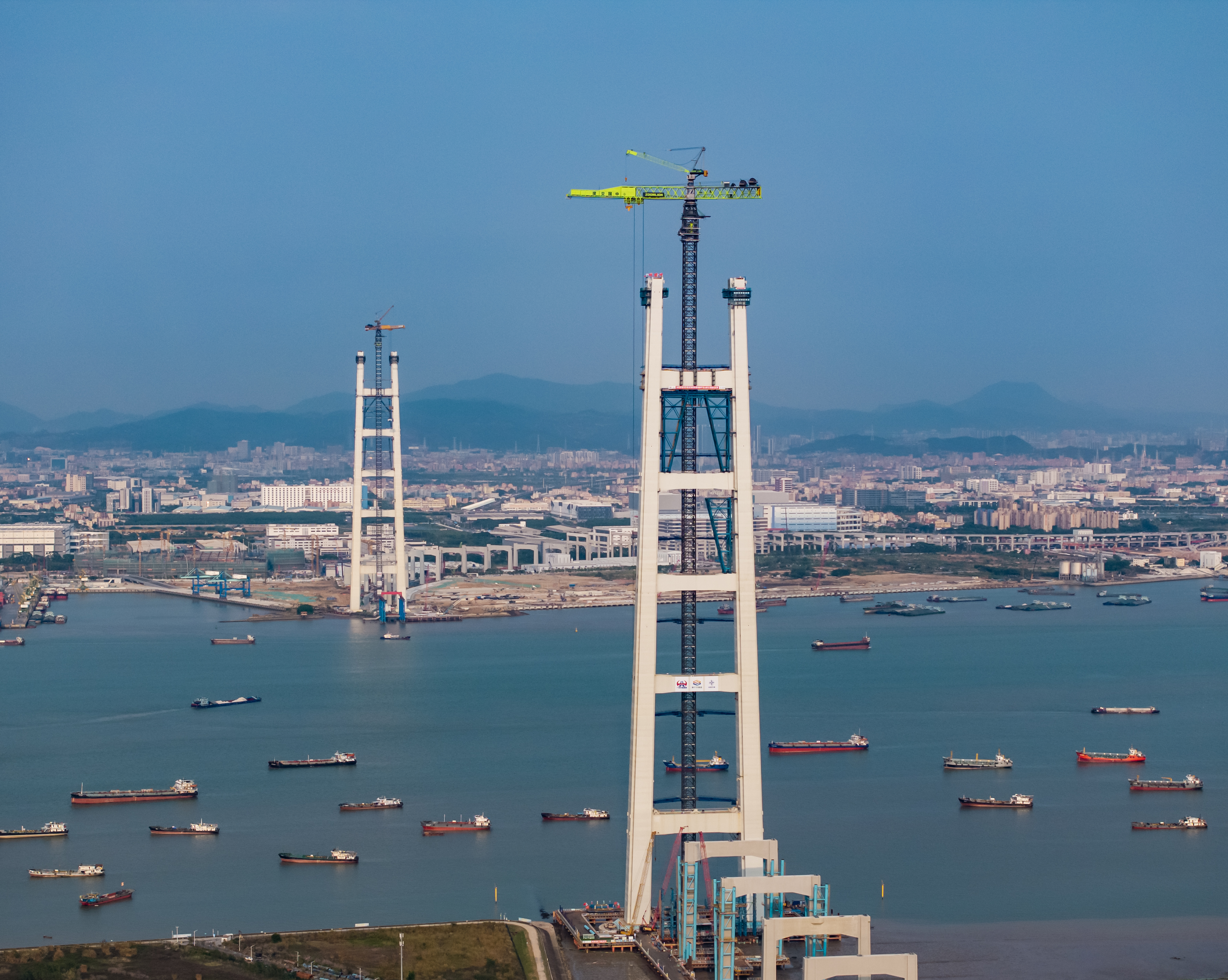 橋塔鋼殼節(jié)段由工廠自動化生產(chǎn)線預制,運抵現(xiàn)場后采用全球最大移動平衡重塔式起重機R20000-720吊裝,配合519種碰撞風險算法,保障極端環(huán)境下的毫米級吊裝。吊裝過程中,北斗高精度定位系統(tǒng)與云端平臺實時聯(lián)動,動態(tài)采集數(shù)據(jù)、規(guī)劃最優(yōu)路徑,數(shù)據(jù)回傳數(shù)字孿生系統(tǒng)復核,形成閉環(huán)管控。