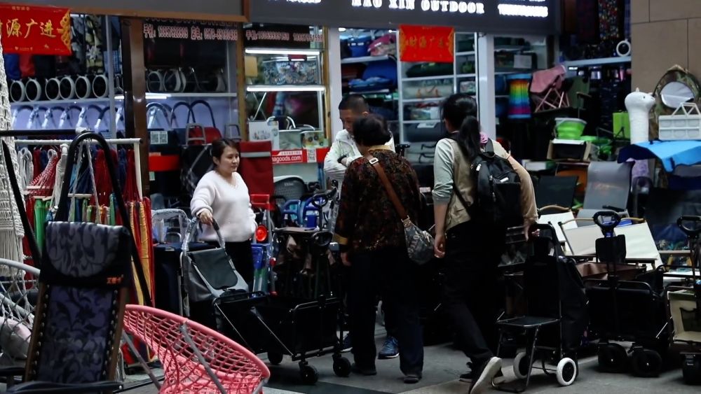 在義烏國際商貿城,帳篷、桌椅、睡袋等戶外用品琳瑯滿目,吸引眾多采購商前來選購,戶外用品市場迎來春日熱潮。
