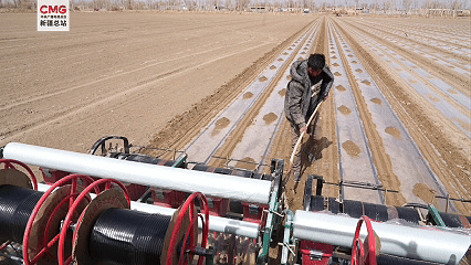 在高標(biāo)準(zhǔn)棉田里,兩臺(tái)搭載北斗導(dǎo)航系統(tǒng)的現(xiàn)代化棉花播種機(jī)來回穿梭,覆膜、播種、覆土等工序一氣呵成,一臺(tái)機(jī)器一天可完成上百畝地的播種任務(wù),還能實(shí)現(xiàn)無人駕駛、精準(zhǔn)直線播種、地膜覆蓋、滴灌帶鋪設(shè)等多種工作,播種效率較傳統(tǒng)方式大幅提升。