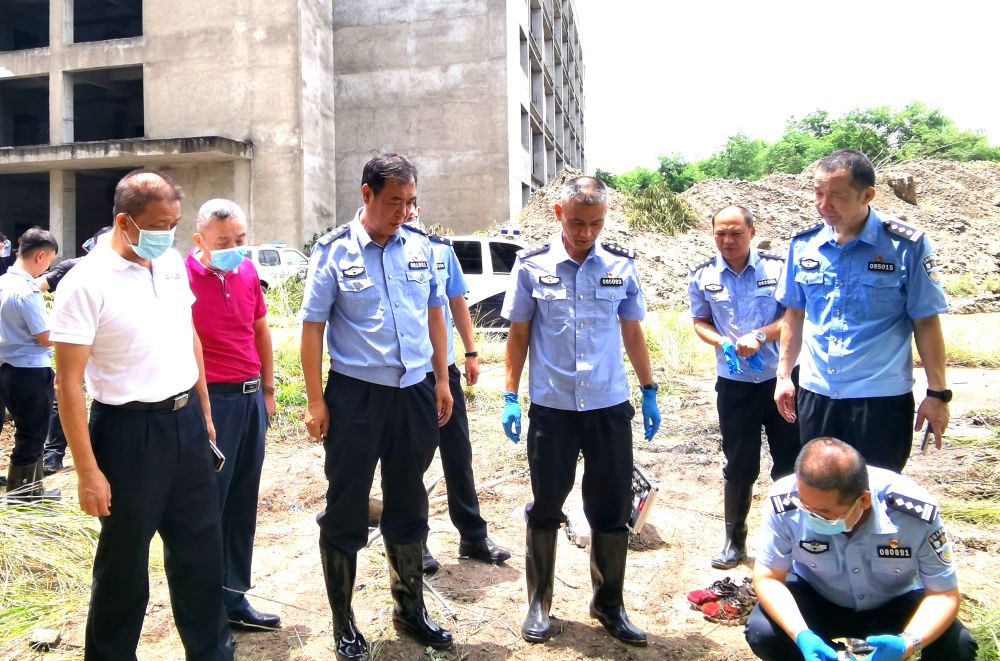 張學杰(前左三)指導現(xiàn)場勘查工作(2021年8月攝)。新華社發(fā)