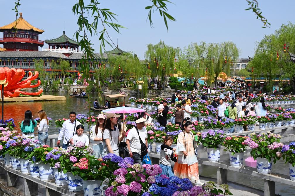 4月5日,游客在河南省開封市翰園碑林游覽玩耍。新華社發(fā)(李俊生攝)