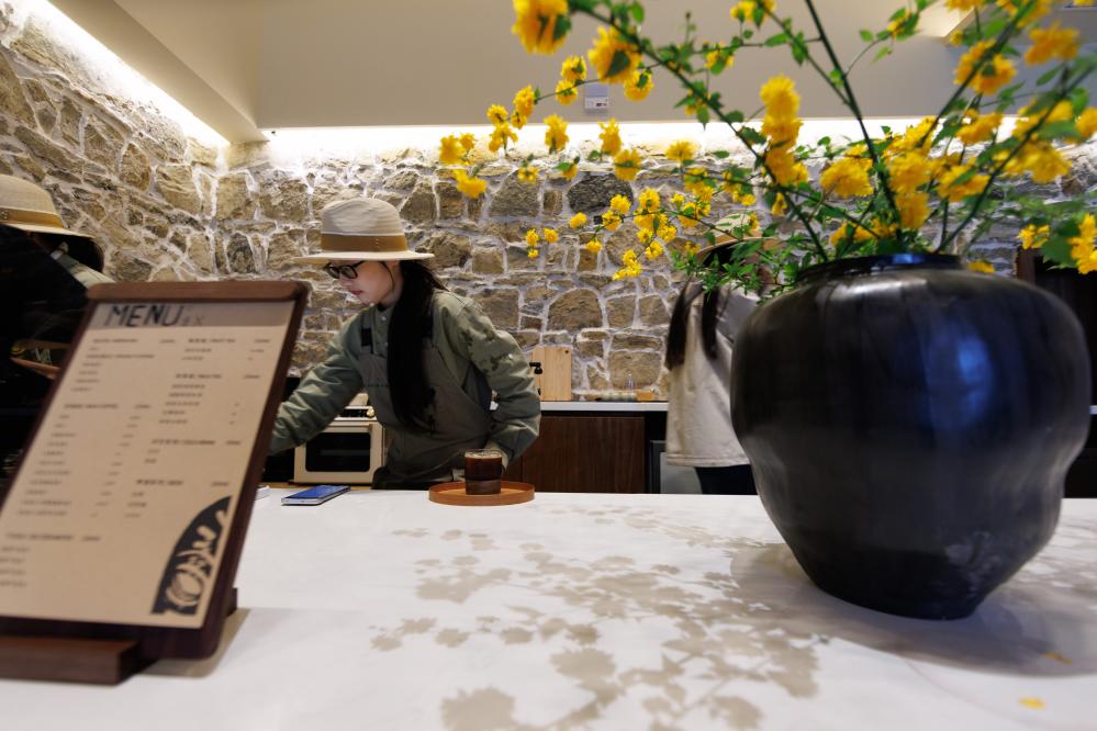4月2日,貴州省畢節(jié)市百里杜鵑管理區(qū)普底鄉(xiāng)迎豐村特色民宿內(nèi),工作人員在制作咖啡。新華社記者 劉續(xù) 攝