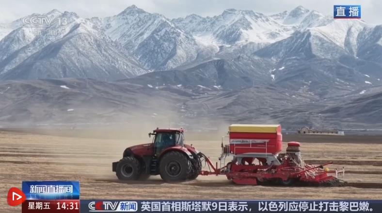 在青海省門源縣的一處青稞種植基地,祁連山東段的達坂山雪峰清晰可見,這里的海拔在3000米以上,屬高原冷涼氣候;同時日照非常充足,是青藏高原青稞種植的黃金海拔帶,也是青海省青稞種植的核心區(qū)之一。此刻,當?shù)剞r(nóng)戶正搶抓高原春播的黃金窗口期,開展播種作業(yè)。