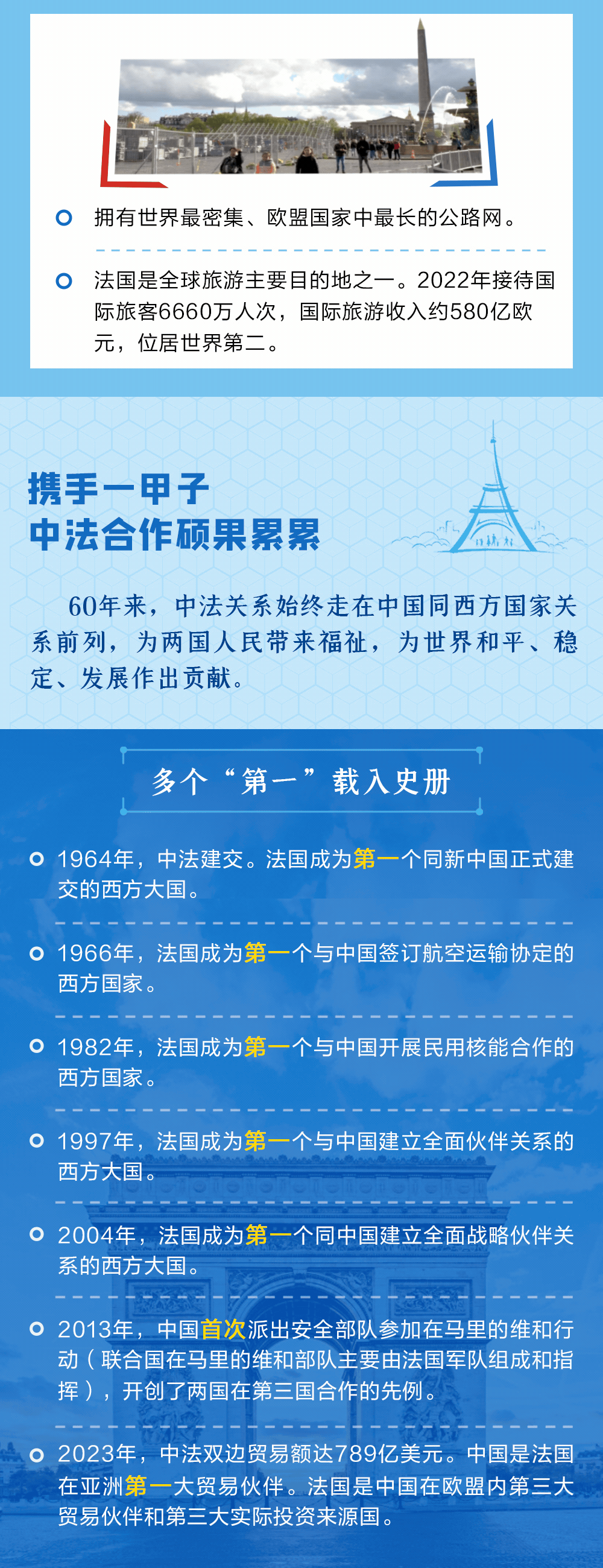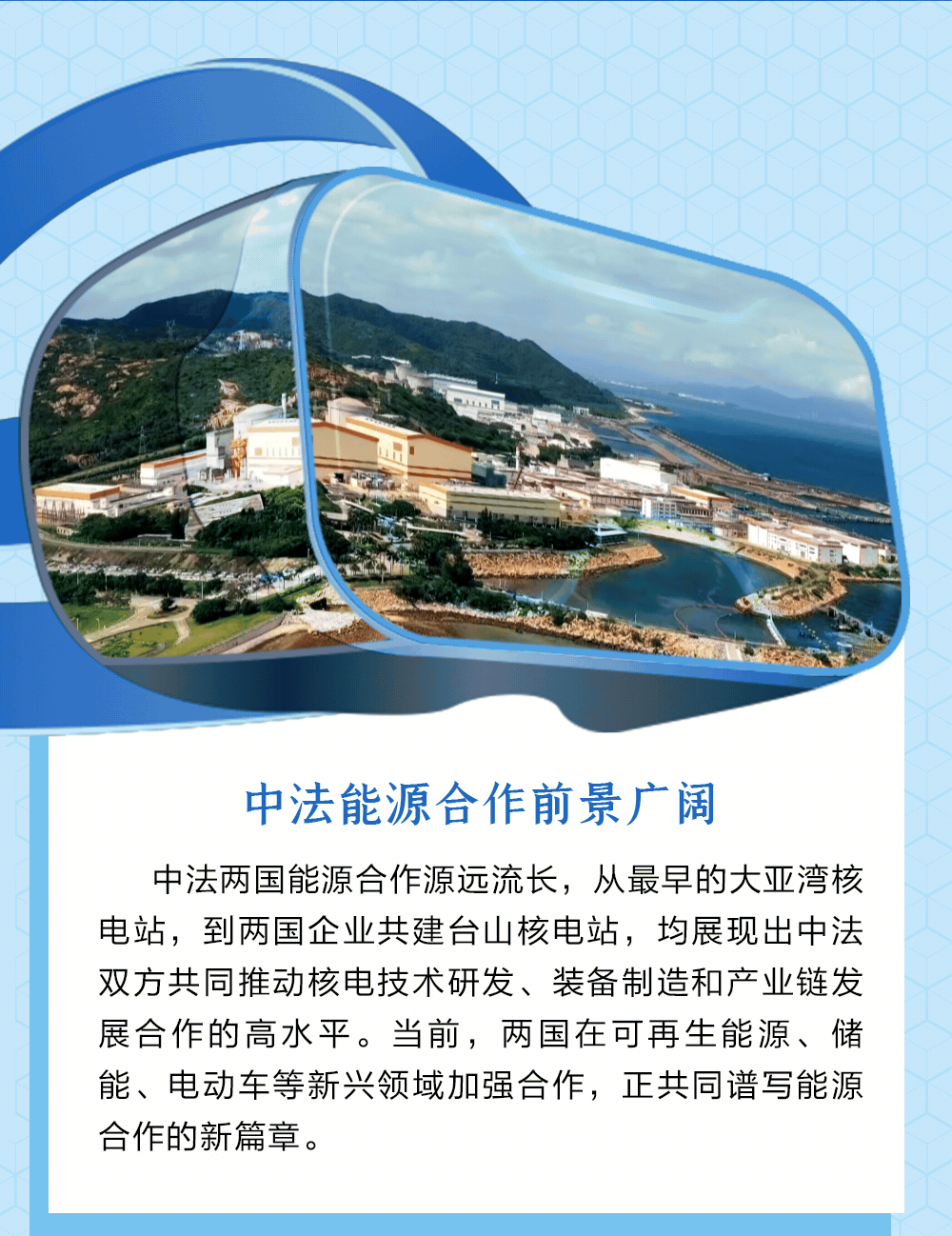 “法國是第一個同新中國正式建交的西方大國,也是最早同中國建立戰(zhàn)略伙伴關(guān)系和開展戰(zhàn)略對話、最早同中國開展民用核能合作的國家?!绷暯街飨瘡娬{(diào),中法是特殊的朋友,共贏的伙伴。