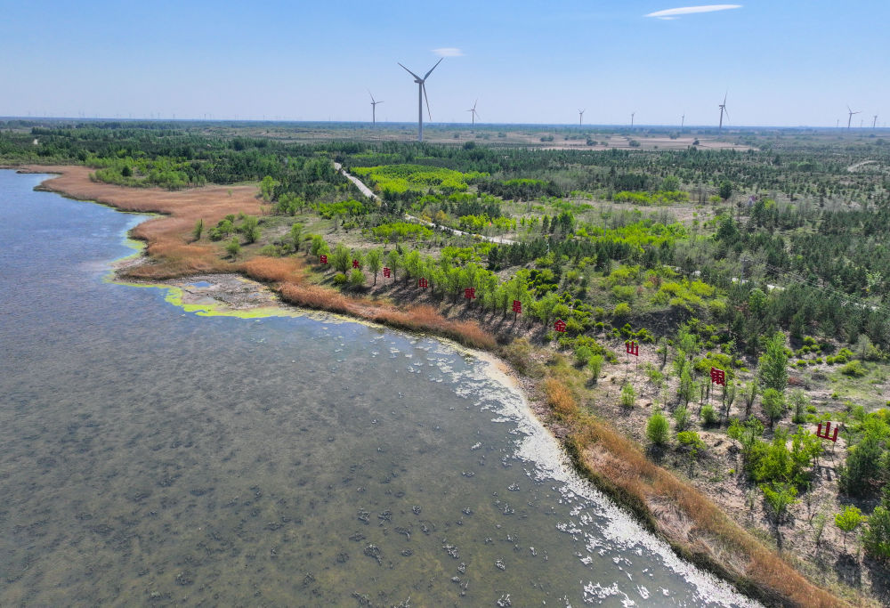 2024年5月15日在內(nèi)蒙古通遼市科爾沁沙地拍攝的“雙百萬畝”綜合治理工程努古斯臺項目區(qū)(無人機照片)。